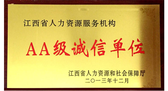 江西省人力資源服務(wù)機(jī)構(gòu)AA級誠信單位