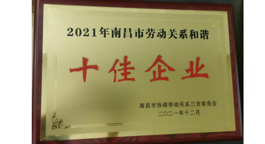南昌市勞動關(guān)系和諧十佳企業(yè)