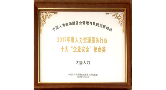 人力資源服務(wù)行業(yè)十大“企業(yè)安全”使命獎(jiǎng)