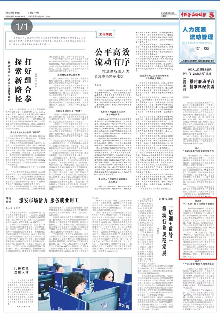 5月28日,中國勞動保障報刊發(fā)江西大唐人力資源集團積極參與江西省“5+2就業(yè)之家”建設,首創(chuàng)的“AI+就業(yè)”數字化賦能智慧就業(yè)模式得到認可和肯定。