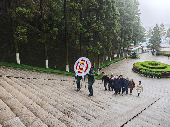 敬獻(xiàn)花圈儀式開始,首先由董事長李民上前整理挽聯(lián),然后全體人員肅立,向革命烈士默哀鞠躬,表達(dá)對先烈們的沉痛悼念?,F(xiàn)場氣氛莊嚴(yán)肅穆,每個人的臉上都寫滿了對革命先輩的敬仰和緬懷。