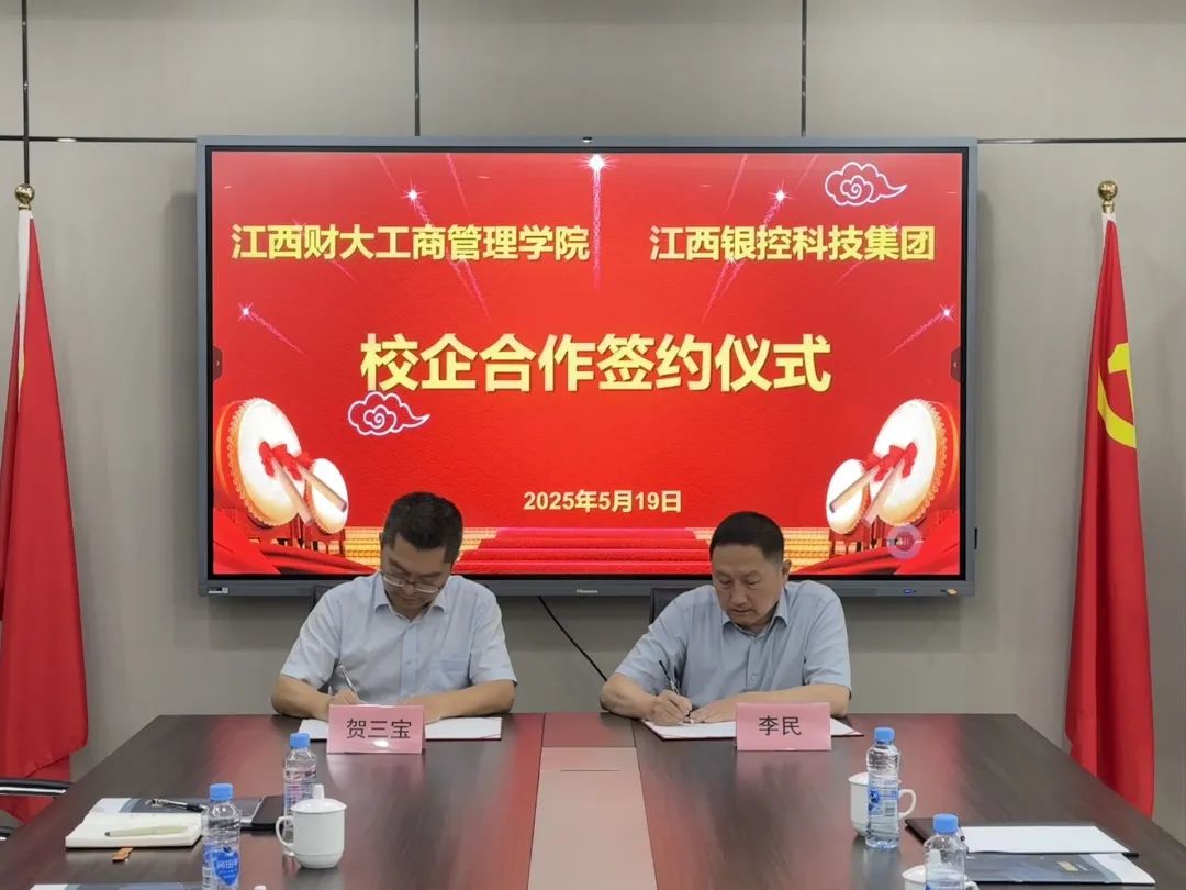 2025 年 5 月 19 日,江西銀控科技集團(tuán)與江西財(cái)經(jīng)大學(xué)工商管理學(xué)院校企合作簽約儀式在公司隆重舉行。此次簽約儀式標(biāo)志著雙方在人才培養(yǎng)、實(shí)習(xí)實(shí)踐基地、社會(huì)化服務(wù)(企業(yè)培訓(xùn)或咨詢業(yè)務(wù))產(chǎn)教協(xié)同育人創(chuàng)新實(shí)驗(yàn)班建設(shè)等方面達(dá)成了深度合作意向,為校企雙方的共同發(fā)展開啟了新的篇章。